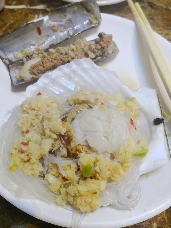 值得品尝!我自己吃了这些,很饱了。攻略推荐的这家,蒸海鲜很赞!大连特色!蛏子王,个头大。这里没有炒菜