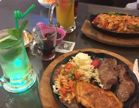 一家凯德广场里的牛排店,牛排分量足够,有免费的水果自助沙律任食,门口等位有叫号机,扫二维码现在可用手机实时看到排位等候的情况,各类扒的价钱算实惠,还有优惠券送。