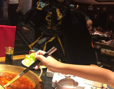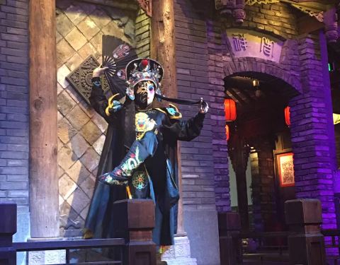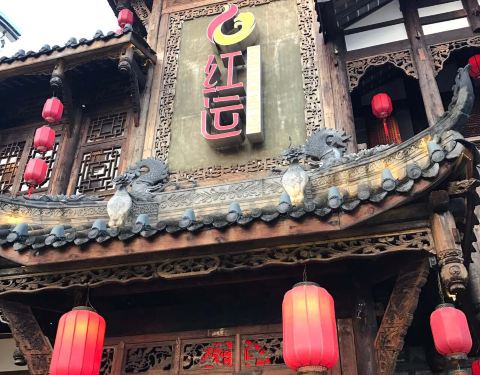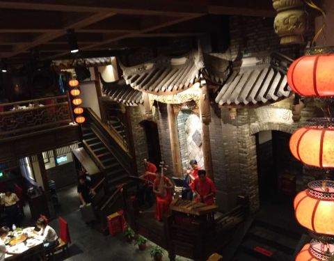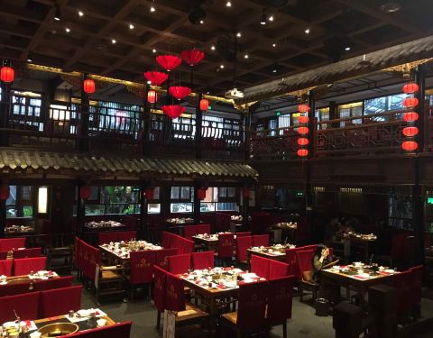 巴蜀建筑风格的川味火锅店,设有川剧表演。