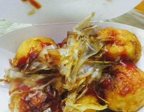 路过突然想吃,之所以就要的小分的,是因为中午吃的比较饱。一如既往的芥末味。现做现卖,很清新,上面的刨出来的鱼片一遇到热的就开始卷了,很有趣。芥末酱比较有劲儿,辣的出眼泪。味道没有什么特别的地方,和西安大多数小丸子一样,不出色,随意吃吃就好。