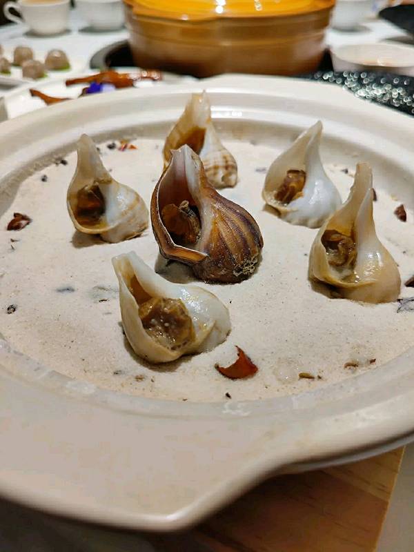 菜品中的海鲜品质参差不齐,基围虾虽然比较新鲜,但是虾头和虾身上有奇怪的黑色污渍,不好评价