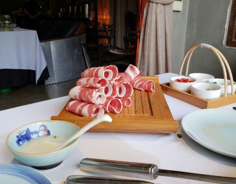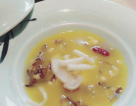 餐厅采用混搭装修,绿植造景遍布其中,令空间别具风情。这里主打海鲜火锅,雪白浓稠的锅底为八小时熬制而成,以清淡养生为特色,配上来自多地的优质鲍鱼,入口令人回味无穷。