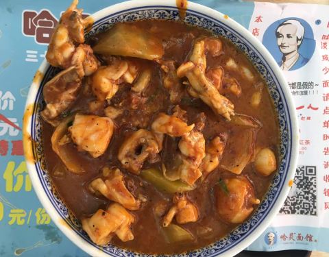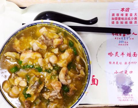 - 每次来上海都要吃一下这家哈灵面馆。他家最好吃的就是哈灵牛蛙面和饭,再来上一份炸猪排。而且价格也不贵