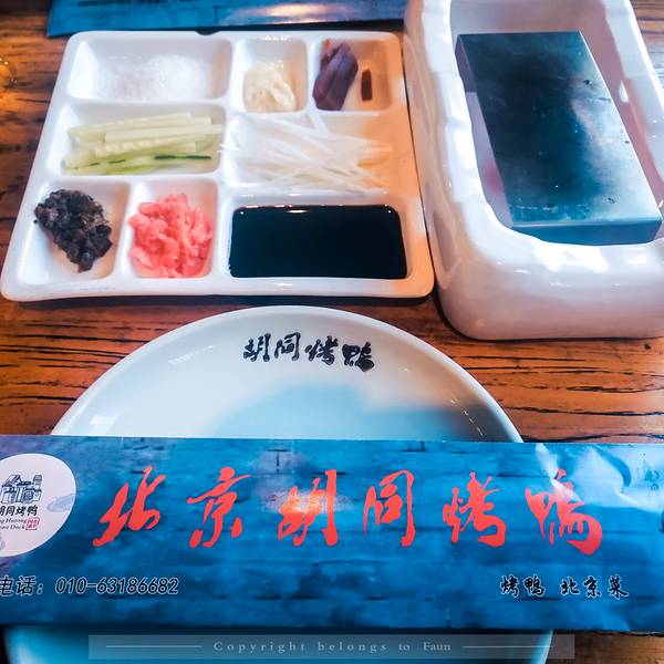 [薄荷]环境: 前门大街西侧,地理位置优越 MUJI正对面还是比较好找 逛完大栅栏可以来这尝下北京特色烤鸭 顺便歇脚 [服务铃]服务: 食客中很多都是来京游客 小哥哥小姐姐服务蛮及时到位 「酥香嫩烤鸭(半)」 必点菜之一,现场片鸭 保证了口感 酥脆的鸭皮蘸白糖 鸭肉、葱丝、黄瓜条加蒜泥 本人最爱 「京城酥肉锅」 寒冷的冬日来个汤还是比较明智 味道鲜美,用料足 喝一碗暖身