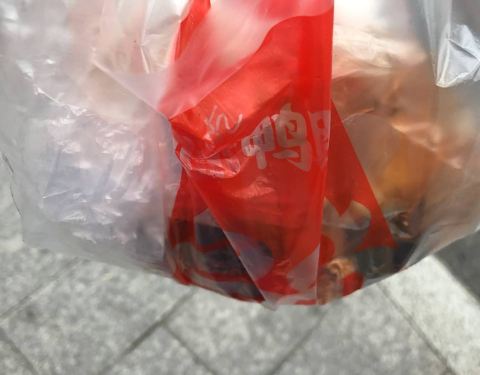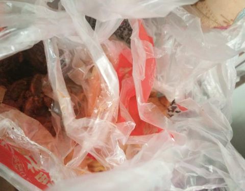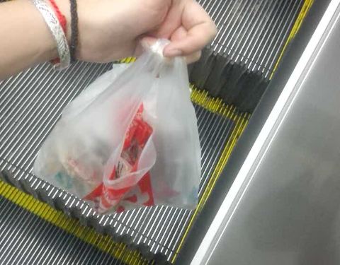 买东西的时候店主把袋子直接在盘子里搁着,然后袋子底下粘了一些油,让她重新套一个都不肯,说了好半天才同意,让人有点不舒服啊