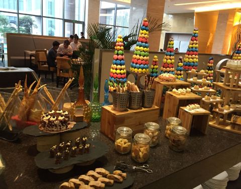 来住了很多次了,对这边的自助早餐感觉非常好,品类多,服务员和蔼可亲,在角落里还有一个圈出来的小儿童乐园。在靠落地窗的一边还看得到外面的花园,觉得十分好。喜欢这边的点心,拉糕之类的很有江南的风格,很赞哟。