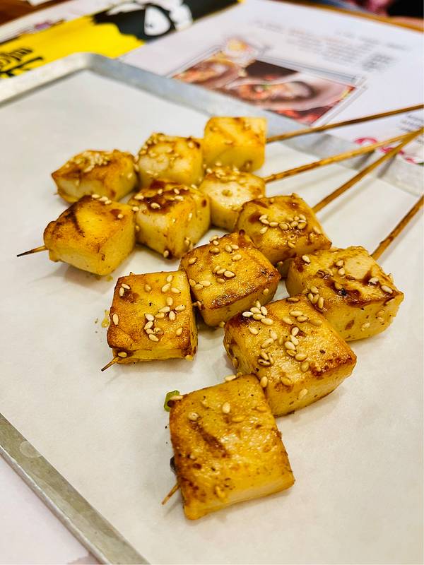 烤鱼豆腐、烤鸡皮串也不错,但烤肥牛口感略老了。