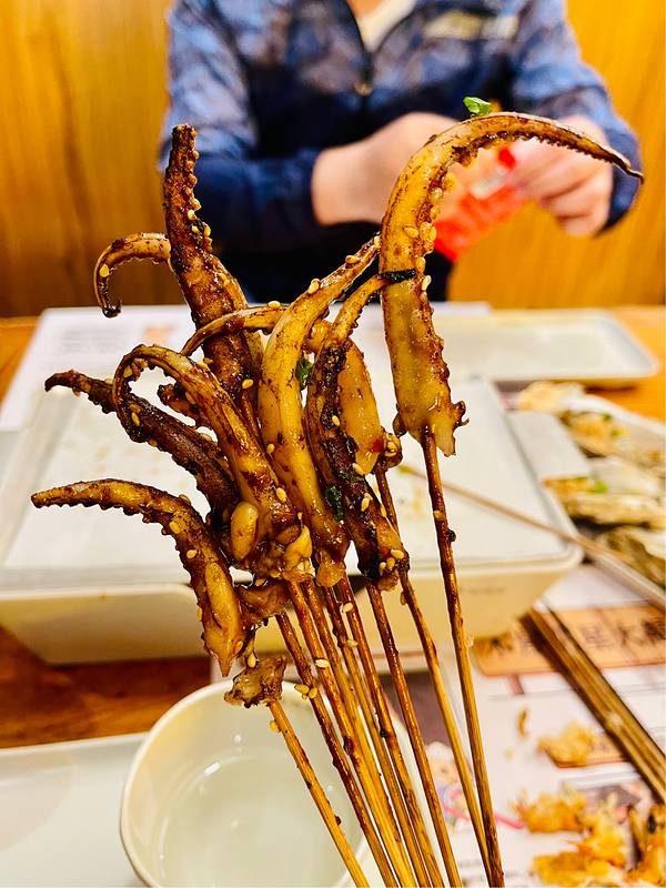 爆汁羔羊肉串、烤生蚝、烤茄子、烤翅中,每次烧烤必点的绝绝子,味道太好了,配上小麦啤酒🍻,精...周末晚上基本需要等位,不过等候时间不长。加热的小炉子很贴心,肉串不能一下子全吃完,搁上面保温可太方便啦。