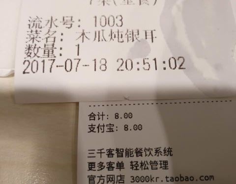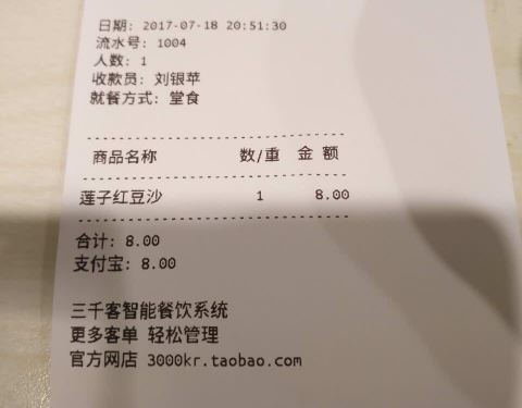 点了莲子红豆沙,结果因为不够一份,又换成了常吃的木瓜银耳。前台点餐处的信息,是通过厨房喊话来更新的