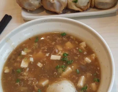 伙伴推荐的,店里生意还蛮不错的诶。点了一份鲜肉生煎,一份虾仁生煎,一份东阳沃豆腐,有些多,挺撑的。虾仁生煎比鲜肉的可口。生煎汤汁不错,不少,并且不腻,不过皮一般,特别是厚的皮子,有的地方太硬了,影响口感。东阳沃豆腐口味蛮不错哒,搭配生煎刚刚好。