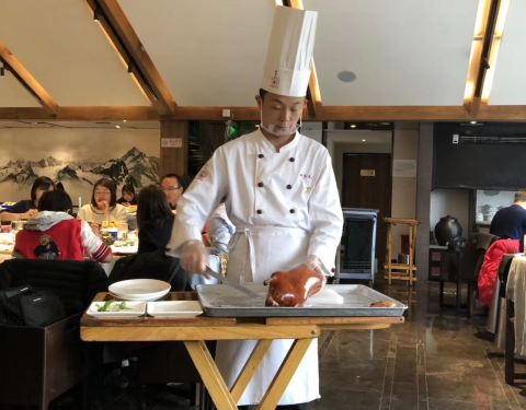 虽是新兴的烤鸭店,环境、味道丝毫不逊色于老字号的烤鸭店。招牌的特选酥香嫩烤鸭采用古法烤制,入口即化、脆嫩喷香。