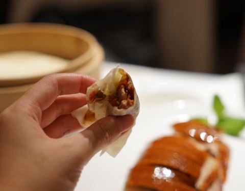 第一口,是惊喜且满足的。与泉州的润饼皮不同,烤鸭的面皮更柔软,也更厚实