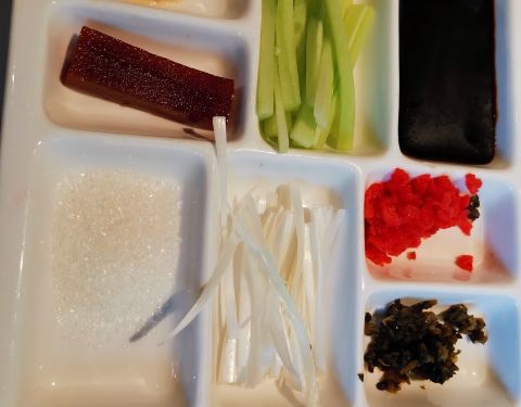 第一口,是惊喜且满足的。与泉州的润饼皮不同,烤鸭的面皮更柔软,也更厚实。青瓜在鸭肉中带出一番清爽,毫无痕迹的淹没鸭皮所带的些许油腻,白糖的颗粒感则是画龙点睛。