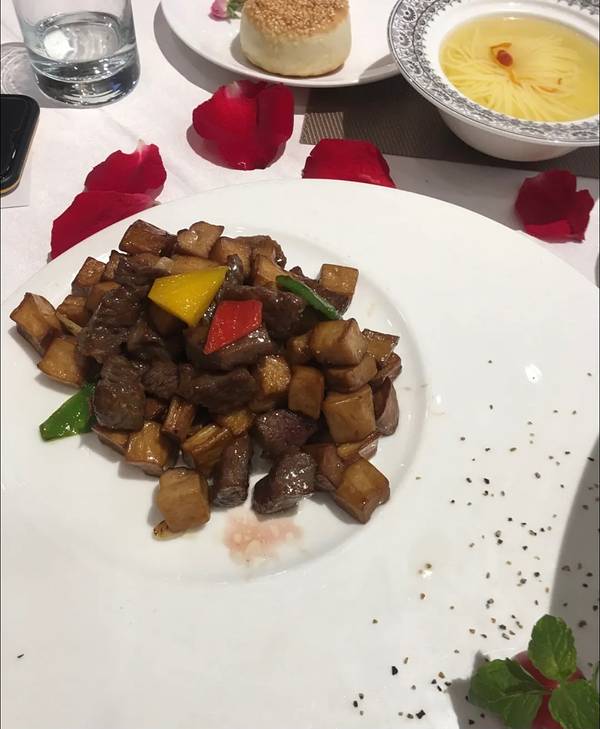 这家店位于通州运河边上 需要提前预约下 一路跟着导航过来还算好找 就是最后需要穿一个小区 门口有不少车位 停车还算方便 一进门报了手机号便由服务员带领着来到了约好的位置 恰好正赶上520 桌子上有用花瓣拼成的520字样 很有新意 扫完霸王餐码就等着上菜了 上菜速度很快 不一会就陆续全上齐了 霸王餐量很大足够四个人吃 【原生态西施鱼】很入味 鱼吃完之后把米饭🍚往鱼汤里一扣 那叫一个香[吐舌] 【煎豆皮】凉菜 微辣 很好吃 【茶香自然炒烤羊肉】羊肉和茶一起炒 肉很嫩并伴有弄弄的茶香 【杏鲍菇炒牛柳】嫩滑可口很下饭 【脆皮饼】很是酥脆 里面有陷儿 【纹丝豆腐】汤类 豆腐切成花状 汤咸蛋适中 很好喝 总的来说是一次很满意的霸王餐体验 无论从菜品还是服务都很不错 下次有机会还会再来