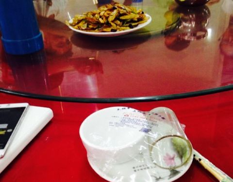- 总体从环境,菜式,服务上来说属于比较高级的,通州这个水平的食堂,目前就这一家了。房间顶上贴的是纯金箔