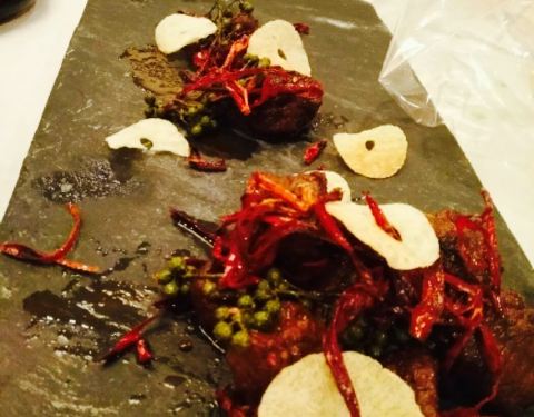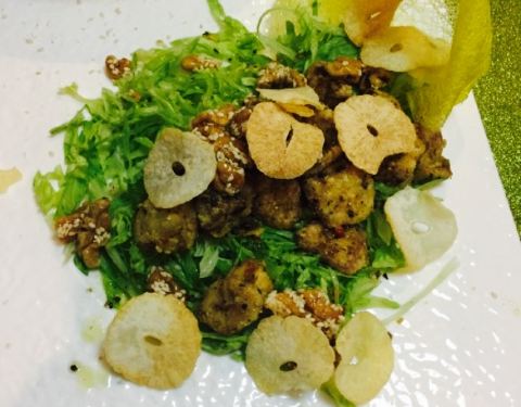 地理位置,还是挺好找的,楼上是一家足疗馆,叫做五指生。正好可在楼上做完足疗,下来吃饭。菜品口味,这家菜品比较个性,有一些特殊的爽口,比如河豚哈哈,我们点的倒是攻略些,茉莉烤鸭需要提前预约,我们没有定,因此就点了普通烤鸭,味道还是可以。菜品偏咸,可是很好吃,总体不错。环境,大厅是高大落地窗,很明亮,空间很宽,房顶较高,觉得很好。餐具很整洁,看着舒服。服务,服务态度不错。