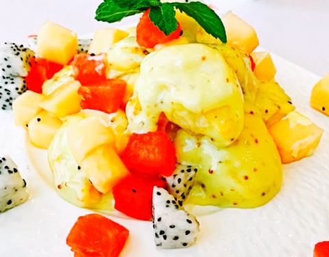 - 菜品是创意居多,无论是卖相和味道都很不错,价位也是适中,性价比要比市里面好好多。特色南瓜汁很好喝