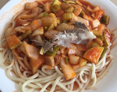 烤肉炒饭味道不错,微辣,爽口,吃到一半才想起来拍照。牛肉面是孩子的最爱