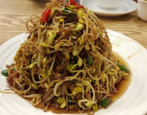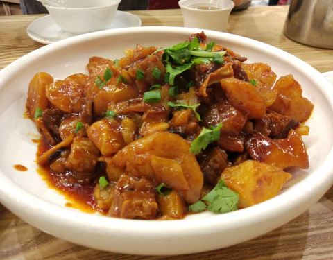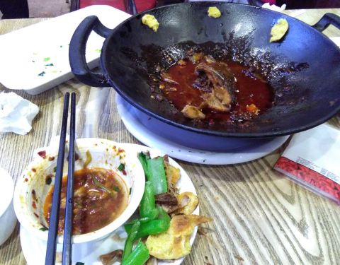 - 总体满意。份量还是蛮大的,这次吃的豆芽有点咸,土豆炖牛肉有点甜,烤羊肉串有点老,朋友赞海带丝还不错