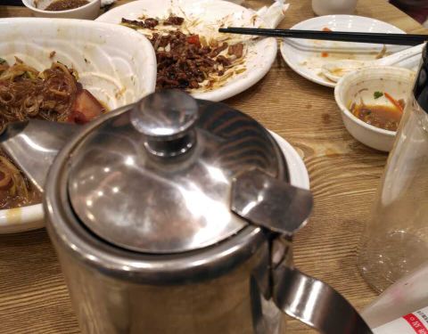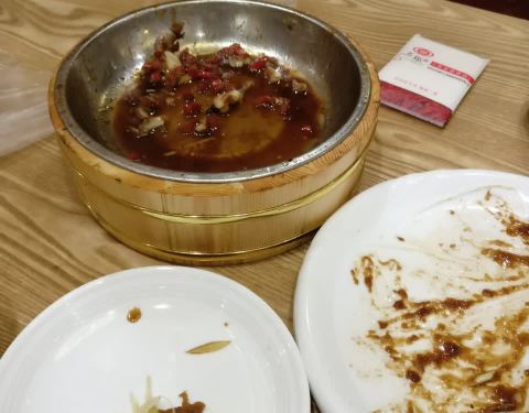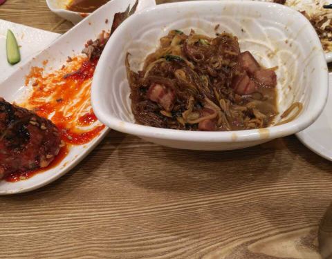 份量还是蛮大的,这次吃的豆芽有点咸,土豆炖牛肉有点甜,烤羊肉串有点老,朋友赞海带丝还不错。。。总体满意