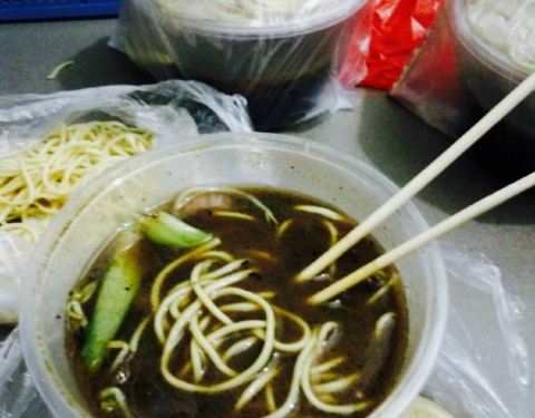 这单买了很久了,有一次去了没营业,就一直没消费。等到有空的夜里,终于兑换。这边的位置也很好,就在德辉广场对面,特特水果门口,摊子支着两口锅,一锅花甲,另一锅就是蟹脚。螃蟹对剖开,可以见到里面的籽,汤汁浸着滋味很浓厚。一份大概三头蟹,打包盒装得满满当当,用来佐酒真不错。但是不习惯坐在路边,打包回家吃。附带的卡片看得出商家的雄心,努力吧。