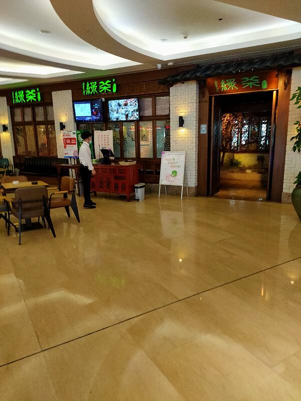 中午找午饭, 楼里看了一圈还是来了绿茶。 【环境】 不知为什么大白天的餐厅, 里面也是黑黢黢的。 门口有一大潭水的原因吗, 感觉餐厅里潮唧唧的, 湿气有点重啊。 【菜品】 菜的口味还是不错的, 春天里的豆...中午找午饭, 楼里看了一圈还是来了绿茶。 【环境】 不知为什么大白天的餐厅, 里面也是黑黢黢的。 门口有一大潭水的原因吗, 感觉餐厅里潮唧唧的, 湿气有点重啊。 【菜品】 菜的口味还是不错的, 春天里的豆瓣青葱油绿的味道喜人, 小烤肉也不会腻味, 吃的都很舒服。 【服务】 服务生有点点懒怠, 叫了不大理人的。