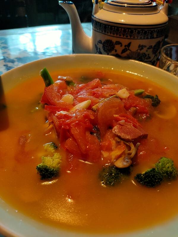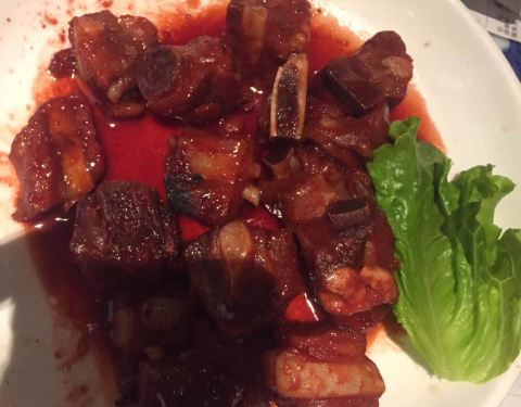 点了雪花糖醋里脊,绿茶葱香烤肉,还有上汤西蓝花。味道都还可以,不过上汤西蓝花是加番茄烧的,感觉这搭配有点新鲜。