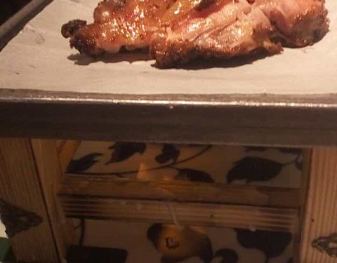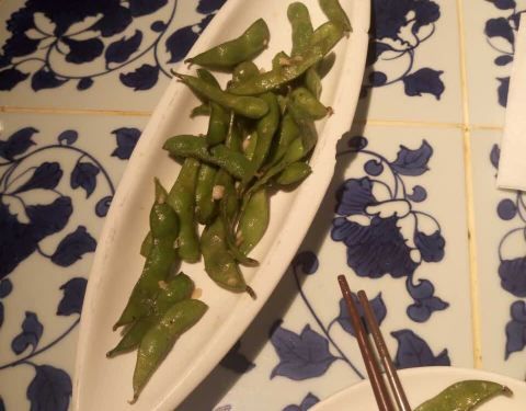 烤鸡还可以,很入味。点了一份毛豆,真的是难吃到爆