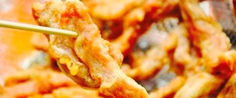✨。火车站附近。在那个啥 。金城宾馆下边。店面不大。嗯很小。可是也很好找。✨。等了会儿。买的里脊肉应该是。没有想象中好吃。有落差。肉炸得有点硬了。都是瘦肉哦。这个好。就是不喝水有点噎。忘了拍实物...
