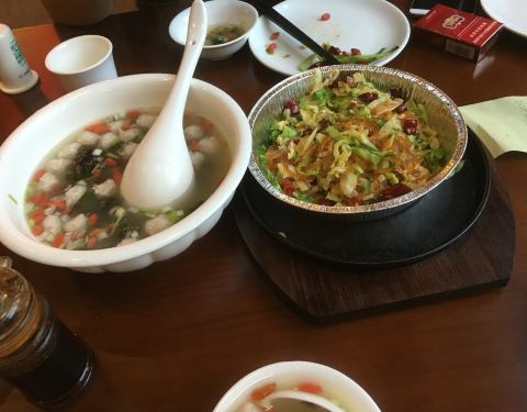 家附近刚新开的,过来尝尝,环境和服务都不错,可是饭菜等口味个人觉得一般吧,铁板包菜粉条,感觉没炒透,就是断生后端上来的,如同嚼草。不过分量挺足的。生汆丸子汤还是可以的,但是太咸。剔筋面面条挺劲道,但是臊子好一般啊,第一次端上来直接没咸味,加了回卤汁才好些,唯一觉得好吃的是小米凉糕,用料足,每块都有大枣,也好吃,希望店家努力吧