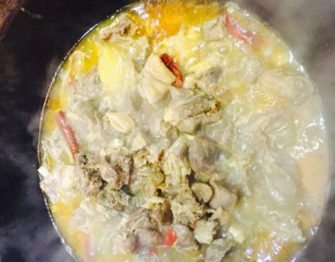...筋,从作法上看,就是加水炖煮,没有过多辅料,保留羊肉本身的纯味,从口感上说,炖的很烂,入口即化