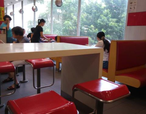 真功夫省中医院店,在医院正门对面上二楼,座位够,人一般,那个维C沙棘果汁新上市的。快餐里面算快咯呵