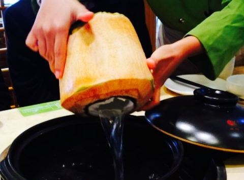 椰子鸡是把养生和火锅结合的最佳作品了!椰子鸡是一道海南菜,具有很强的药用价值,让想养生又不想离开火锅的人们有了新的选择!来自于网络来自于网络捞出刚刚煮熟的鸡肉,沾着酱油等调料,伴着淡淡的椰子香气,味道真的太好了!来自于网络地址:五棵松潭南路凯迪拉克中心北门对面瑞丰园美食新天地二楼 电话:010-68210056 营业时间:10:30-21:30 人均:130