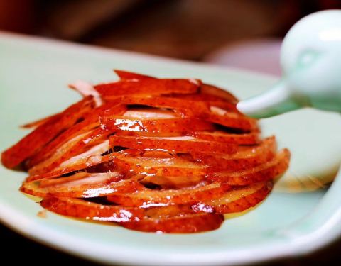 烤鸭要了半份,还要了土豆,茄子和疙瘩汤。土豆丝和茄子先上的味道挺不错。烤鸭非常赞,精美的器具,香酥的烤鸭卷饼加上黄瓜条,哈密瓜条和小葱吃起来很享受,最后来碗鲜美的疙瘩汤,吃着很享受。