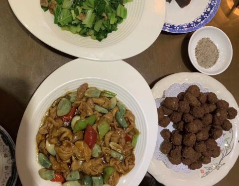 芹菜肚丝最好吃,卤煮有点腻,口味不错,酸辣汤很好喝,有小时候的味道,溜滑里脊,豌豆糕因为太饱了...