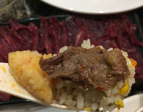 朋友特别推荐的一家火锅店,平时健身的时候就特别爱吃潮汕牛肉火锅,牛肉种类是蛮多的,我也比较喜欢吃热气牛肉,不大爱吃冷冻热,还有比较推荐的就是他家的牛肉炒饭,真的很好吃,分量也很足,如果你很饿,绝对可以让你吃到撑,调料里面我比较喜欢加沙茶酱和花生酱,味道是最好的