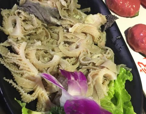 我去的那天时间早,服务员还在做上班前的训示。不过看到有顾客来里面就拨出人来招待。 每一桌店家送了一盘脆萝卜,真的是超级脆,腌制过也非常入味的,很好吃。由于吃完要去赶火车,所以有点赶时间,大脑短路了,...我去的那天时间早,服务员还在做上班前的训示。不过看到有顾客来里面就拨出人来招待。 每一桌店家送了一盘脆萝卜,真的是超级脆,腌制过也非常入味的,很好吃。由于吃完要去赶火车,所以有点赶时间,大脑短路了,跑去潮汕火锅店居然点了一个鸳鸯锅,也是无力吐槽自己了。毕竟不是重庆的牛油火锅,所以不推荐大家在这里点鸳鸯锅,这里的鸳鸯锅的辣锅就是纯粹的辣,并不香,还没有麻辣烫里的辣汤好喝,所以潮汕火锅店,还是推荐大家点他们家的白汤锅。 两个人吃,所以点的菜比较少,大家都强烈推荐的龙吊自然是要点的,肉片切的还算比较厚实,非常嫩,稍微少的时间长一点也不会觉得老。这个菜要点赞的。他们家的毛肚,长得和牛百叶部分长的一样,虽然我知道牛百叶和牛肚都是牛的胃,不过是不同部分,不过一般火锅里牛肚都是一片片的居多,像牛百叶这样一丝丝的少见,总体来说毛肚还是比较嫩的,缺点就是这种切丝的,烫了之后就缩掉了,吃在嘴里感觉很不过瘾啊!必须一大把一起烧,一起吃才有感觉。如果店家以后一直是提供这种类型的毛肚,建议可以切成大块的会比较好哦。其他东西都是一些常规的豆制品和蔬菜,味道无功无过,就那样了。价格方面,人均100,算是现在的火锅的普遍价格了。 总体来说,来潮汕火锅店吃还是要多点他们的牛肉,这家店的牛肉也确实比较出色,后来我走了以后我朋友还点了手打牛肉丸,说非常弹牙鲜美。