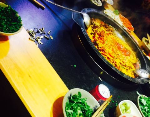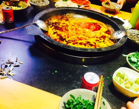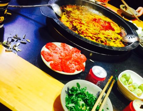 大概2年没有来过这边了。新北这个地方是我第一次来成都到的第一站。再次来到这边感觉很贴心。 。地点很好找,招牌很醒目,老远的就见到了。很久没有出来聚餐了,5个人,点了10多个菜。味道很赞,锅底味道很足。煮出去的菜格外好吃。特别是嫩牛肉,腰花和虾滑。地方有些小,桌子之间挨得近,比较拥挤,很吵。