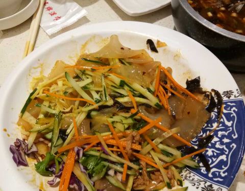 一直挺喜欢吃东北菜,好吧,各种菜,哈哈,之前是去蕴川路那家东北菜多点,这次正好看到万达这家有活动促销,便团了几张券带菁菁来试试。 这家从万达的西面搬到东面来了,店面感觉小了些了,生意还不错。服务也还算热情的说。 口味的话还是不错的,锅包肉,地三鲜,鸡丝凉面都是每次必点的。加上用了优惠价格就更便宜了,随便吃吃蛮好的。就是菁菁吃不下了,不然再能点两根大骨头🦴的说ヾ(✿❛3❛)ノ