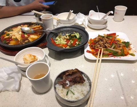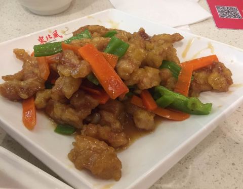 [环境] 简约干净 工作日中午人还不多,在金山万达顶层。 |锅包肉^东北特色啊,酸酸甜甜就是它,炸的面团比里面的肉要厚,外脆里嫩 |麻婆豆腐^并不忙,也并不辣味道还可以吧,做的很本地化 |小鸡炖蘑菇^据说是东北地道的特色菜,味道还行吧,土豆比较多 [服务]上菜很快
