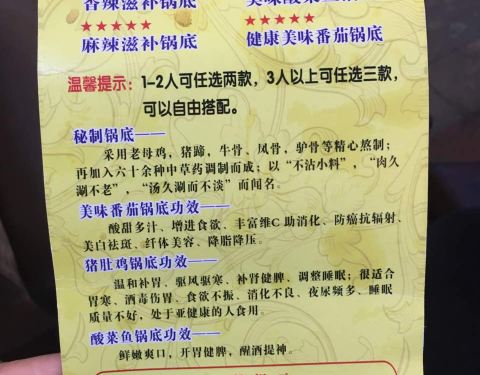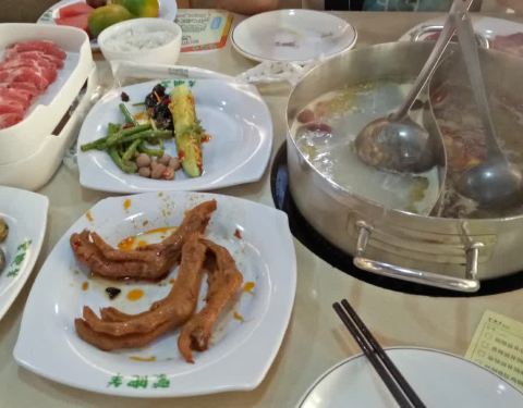 性价比很高,菜品也比较丰富,而且很新鲜。在南方吃这种火锅味道很不错,锅底有六种可选,我选的猪肚鸡的还是很有特色的,汤很鲜。