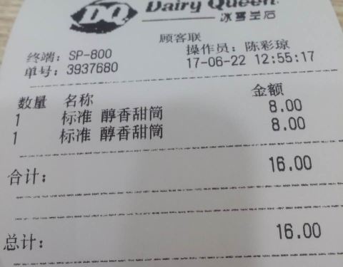 无聊在家点外卖, 从高鑫广场送来, 速度十分给力, 大概20分钟这样就到家了。 最近dq都是买一送一十分划算, 冰袋包着严严实实送到家, 一点没化, 分量很足, 很久没吃dq, 还是以前の味道, 奥利奥芝士感觉还...无聊在家点外卖, 从高鑫广场送来, 速度十分给力, 大概20分钟这样就到家了。 最近dq都是买一送一十分划算, 冰袋包着严严实实送到家, 一点没化, 分量很足, 很久没吃dq, 还是以前の味道, 奥利奥芝士感觉还是纯的奥利奥比较好吃, 红豆抹茶的红豆感觉冻得有点久, 可能还是抹茶巴旦木比较好次, 听说出了新品焦糖海盐跟冰淇淋披萨, 想点的时候看到焦糖海盐常常卖光, 下次可以试试看, 好像挺不错の样子, 希望dq还是能继续能有如此大的优惠力度, 大概暑假懒人宅家会经常点。