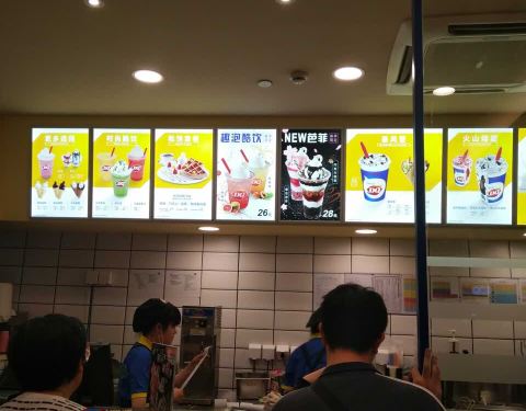 沙发位置很舒服,店面不是很大,干净整洁。冰激凌圣代口感浓厚,甜而不腻,草莓果酱也很好吃。服务员热情,态度很好,很贴心的给了纸巾。