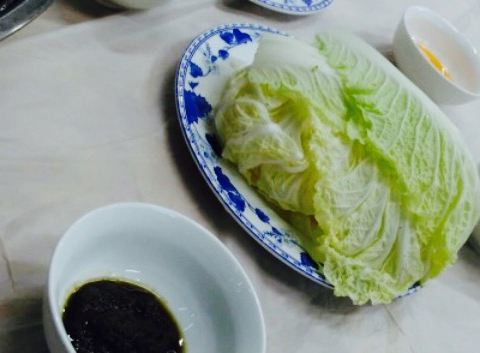 吸引我的不光是老式铜锅,还有新鲜的羊肉。能吃出香味儿的羊肉。还有锅底,白菜豆腐,蘸着浓浓的芝麻酱,的确很不错。这样的老店在青岛是没有的。连北京好多老式涮肉也不是这个味道了,量也不小,很可口。全家都很开心。