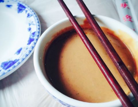 - 羊肉两盘,切的比较薄,很入味,再蘸上小料,简直棒棒哒。现榨辣椒油虽然不辣,不过十分香,必须点一份啊