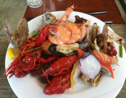 海景自助餐厅,一边用餐一边赏景,惬意无比,海鲜、肉类、水果种类丰富,值得推荐。