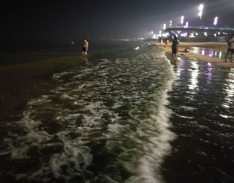晚上在喜来登酒店餐厅用餐,是自助餐,有各式海鲜、烧烤、寿司、西点。 晚上7点到8点间,在喜来登酒店的露天广场,有歌手驻唱。 从餐厅出发可以在海边走走,欣赏下夜景,吹吹海风。晚上人不多,有一段路挺暗的,要注意躲避夜骑的自行车手。