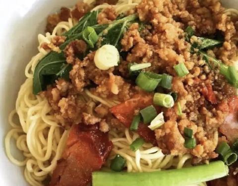 春记是富都为食街最老的一家摊贩,目前由第三和第四代经营,就位于为食街的入口处。这里卖的是古早味大埔面,也就是我们所熟悉的客家面。客人可以选择清汤或干捞,通常老顾客都喜欢叫干捞的,一碗干捞面搭配香喷喷的肉碎、叉烧切片和蔬菜,还有一碗云吞汤,简单而美味。