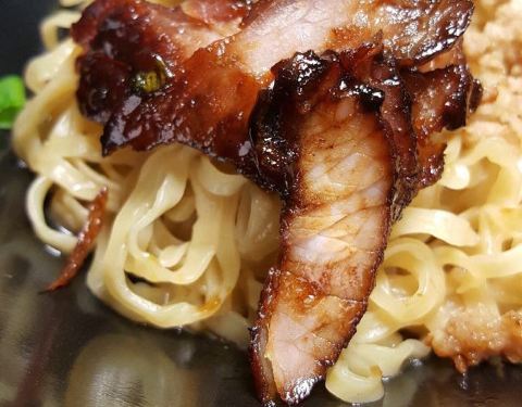 细腻的面条加上叉烧,肉酱很美味,配上凉茶冰在这里享用美味的午餐