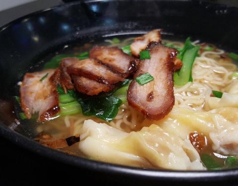 面条没有云吞面重碱水的味道,很清爽,有嚼劲,配的碎肉和叉烧摆的挺好看的,整体味道不错 - ...埔面,有分大中小份的,点了个中份,感觉女孩子够吃了,再加了点料,面里的云吞有左口鱼的味道,很鲜